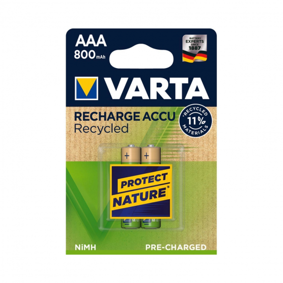 Varta blister de 2 pilas recargables AAA recycled 800mah oro verde