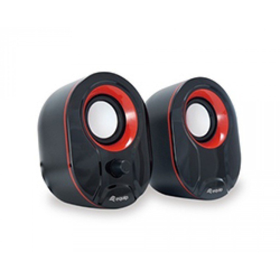 Equip 245332. Uso recomendado: PC. Canales de salida de audio: 2.0 canales. Tecnología de conectividad: Alámbrico. Potencia estimada RMS: 3 W, Rango de frecuencia: 80 - 20 Hz, Obstrucción: 40 Ω, Sensibilidad: 80 dB. Color del producto: Negro, Rojo