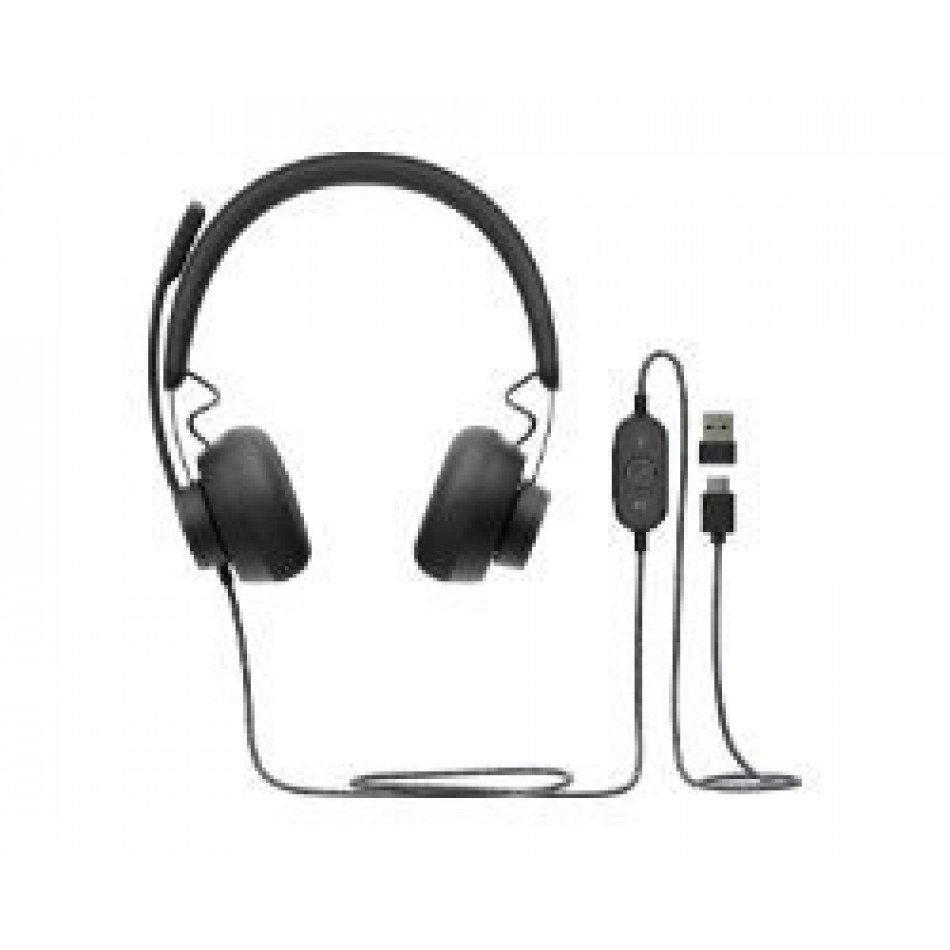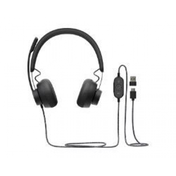 Logitech Zone. Tipo de producto: Auriculares. Tecnología de conectividad: Alámbrico. Uso recomendado: Llamadas/Música, Longitud de cable: 1,9 m. Peso: 211 g. Color del producto: Grafito