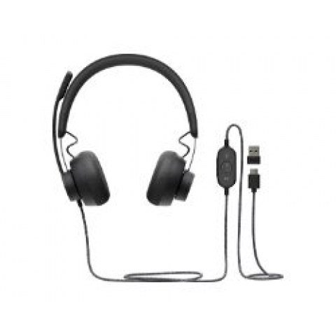 Logitech Zone. Tipo de producto: Auriculares. Tecnología de conectividad: Alámbrico. Uso recomendado: Llamadas/Música, Longitud de cable: 1,9 m. Peso: 211 g. Color del producto: Grafito