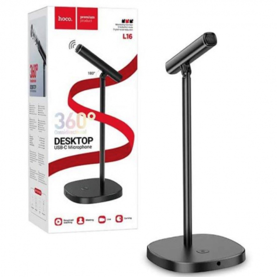 Hoco L16 Mike USB Desktop Microphone BlackEl Hoco L16 Mike es un micrófono de escritorio USB en color negro, diseñado con un ambiente sencillo y fabricado con materiales de aleación de alta calidad. Este micrófono está equipado con tecnología Electret HD omnidireccional, que garantiza una transmisión estable y clara de la señal de voz.Ángulo ajustable y base antideslizanteEl Hoco L16 Mike cuenta con un diseño ergonómico que permite ajustar el ángulo del micrófono hasta 180 grados, lo que facilita su posicionamiento según tus necesidades. Además, su base antideslizante proporciona estabilidad y fiabilidad durante su uso.Especificaciones técnicas- Tipo de micrófono: Micrófono eléctrico omnidireccional- Respuesta en frecuencia: 100-15000Hz- Sensibilidad: -36 dBFS- Interfaz de monitor: 3,5 mm- Interfaz de entrada: Tipo-C 4,8-5VCon el Hoco L16 Mike USB Desktop Microphone Black, podrás disfrutar de una excelente calidad de sonido en tus grabaciones, videollamadas o transmisiones en vivo. ¡No pierdas la oportunidad de mejorar tu experiencia de audio!¡Mejora tu experiencia de audio con el Hoco L16 Mike USB Desktop Microphone Black!