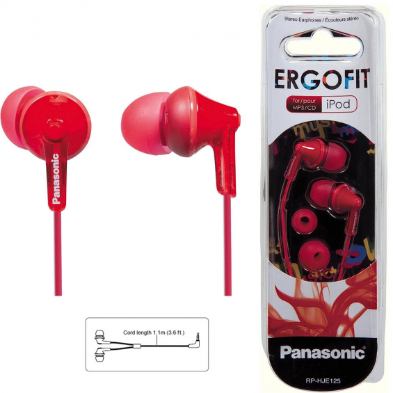 Auricular Panasonic RP-HJE125ETipo de productoAuriculares in-earSeriePanasonic RP-HJE125 .Tipo de acoplamiento al oídoIntraauralesFunciónAuriculares con cableSonidoRespuesta en frecuencia: 10 - 24.000 HzImpedancia: 16 ohmsSensibilidad: 97 dB/mWMembrana: 9 mmPotencia máxima: 200 mWCableLongitud del cable: 1,1 mTipo de cable: BilateralClavijas: 3,5 mm, conector dorado¡Experimenta un sonido excepcional con los auriculares Panasonic RP-HJE125E! ¡Compra ahora y aprovecha el stock disponible en las Islas Canarias!