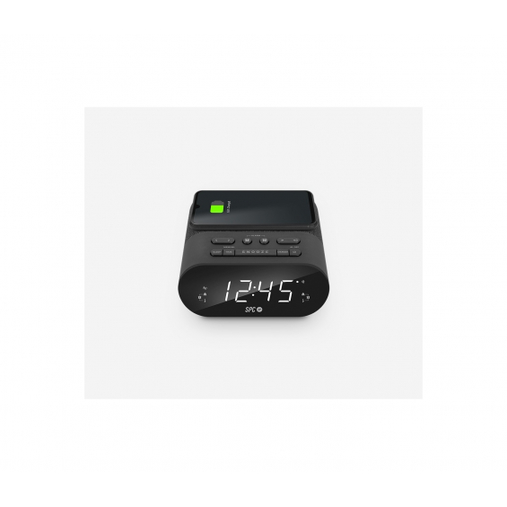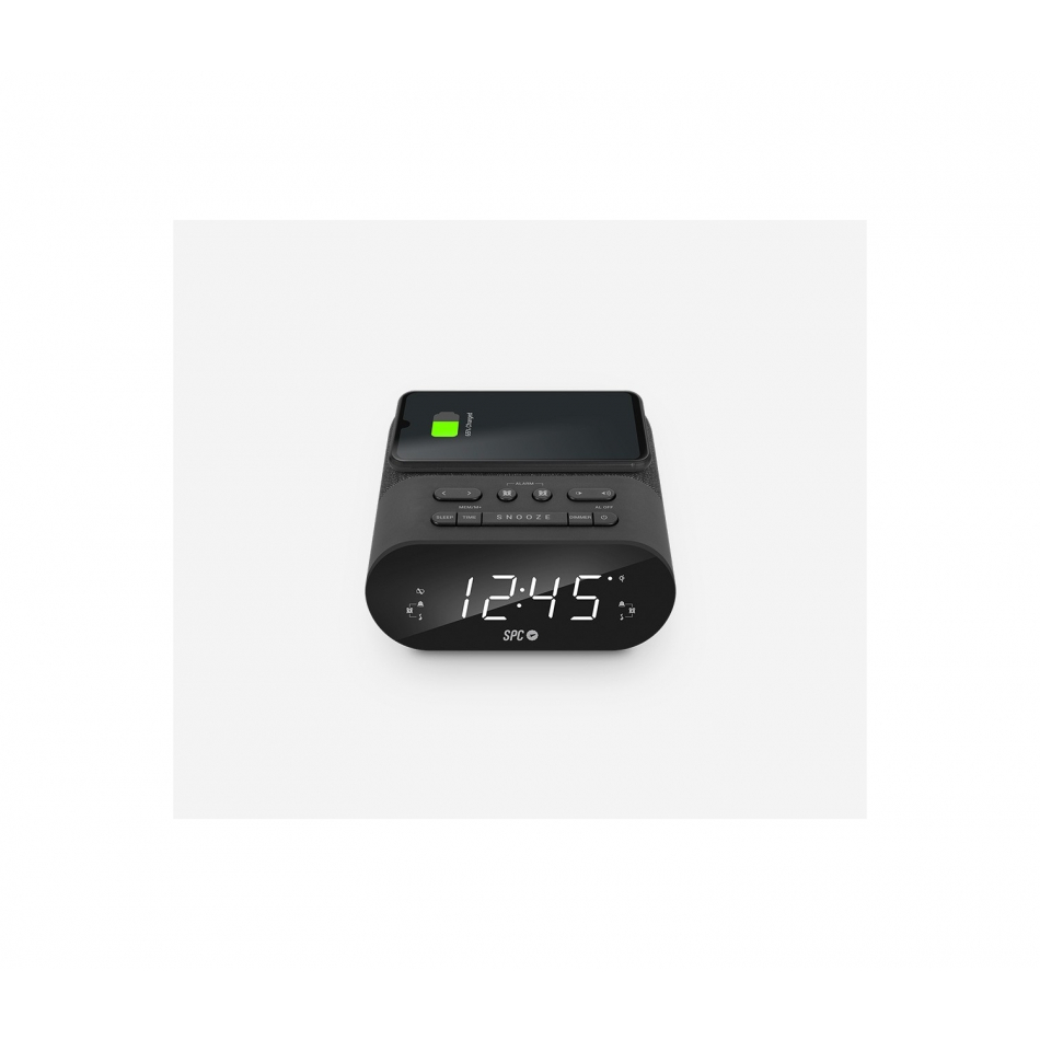 - Radio despertador LED compacto con brillo regulable - Base de carga inalámbrica - Simplemente coloca el teléfono en la parte superior del dispositivo - Almacena emisoras de radio - Dos alarmas configurables - Puerto de carga USB para cargar iPhone o Smartphone - Despertador con buzzer o radio - Pila CR 2032 para respaldo de datos incluido