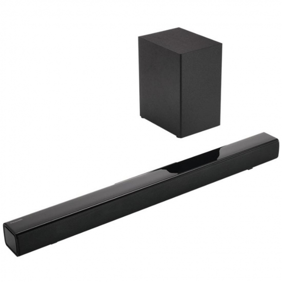 Panasonic SC-HTB150EG Soundbar: Una experiencia de sonido dinámicaEl sistema HTB150 es una elegante y estilizada barra de sonido con un subwoofer inalámbrico que reproduce un impresionante sonido de 100 vatios con un potente rendimiento de los bajos. La unidad principal presenta un cuerpo en color negro brillante y una elegante rejilla metálica para los altavoces que realza cualquier espacio interior.Potencia de salida totalAl ser un sistema de 2.1 canales, la barra de sonido HTB150 impresiona con dos altavoces en la unidad principal y un subwoofer inalámbrico que alcanza una gran potencia de salida total de 100 W. Esta barra de sonido produce un sonido dinámico que es mucho mayor de lo que parece dado su tamaño compacto.Potencia de salida total: 100 WSubwoofer inalámbrico (55 W)Subwoofer inalámbricoEl subwoofer se conecta de forma inalámbrica a través de Bluetooth®, por lo que puedes colocarlo donde mejor enriquezca tu experiencia de visualización. El altavoz de graves resulta fundamental para mejorar el rendimiento del sonido del sistema gracias a una bonita respuesta de los bajos ampliada.Subwoofer inalámbrico (55 W)Conexión sencilla al televisor a través de un cable HDMI ARCSolo necesitas un cable para conectar la barra de sonido HTB150 a tu televisor. Un cable HDMI* de fácil ajuste envía el sonido estéreo a través del canal de retorno de audio (ARC) del televisor a los altavoces más potentes de la barra de sonido para que las bandas sonoras cobren vida e intensifiquen el dramatismo.Conexión sencilla al televisor a través de un cable HDMI ARCAcabado premium con una rejilla para altavoces de malla metálicaGracias a sus líneas estilizadas, su elegante acabado en negro brillante y su rejilla de malla metálica, la barra de sonido HTB150 complementará tanto el aspecto de tu televisor como su sonido. Al estar colocada discretamente debajo del televisor, no te distraerá de la acción en pantalla.Acabado premium con una rejilla para altavoces de malla metálicaBluetooth® para reproducir música en estéreoLa barra de sonido HTB150 tiene Bluetooth®, por lo que puedes escuchar música en tus dispositivos de forma inalámbrica. La selección de pistas y el control del volumen se realizan desde tu propio dispositivo inteligente, por lo que puedes compartir tus canciones fácilmente con el potente sistema de altavoces de 100 W.Bluetooth® para reproducir música en estéreoConexión a través de una entrada ópticaUn cable óptico es una opción popular para los propietarios de barras de sonido a los que les gusta un sonido de calidad al conectarlas a un televisor. El uso de un cable óptico te permite disfrutar de un gran sonido estéreo.Conexión a través de una entrada óptica