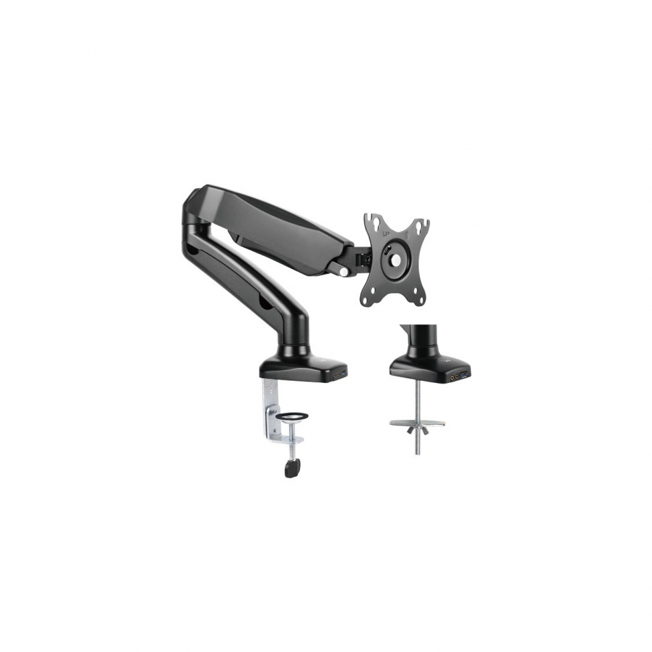 ree un entorno de trabajo ergonómico y que ahorre espacio utilizando el Soporte de escritorio EW1515 con resorte de gas, totalmente metálico. Coloque el monitor a la altura y ángulo de visión ideales utilizando tan solo una mano gracias a su cómodo sistema de resorte de gas. ¡Ideal para espacios de trabajo flexibles! El soporte de escritorio EW1515 es adecuado para un monitor de hasta 27 pulgadas y entre 2 y 6,5 Kg de peso, y es fácil de acoplar al escritorio a través de un abrazadera o soporte con ranura. Ideal para espacios de trabajo flexibles Cuando trabaje en un espacio de oficina con espacios de trabajo flexibles, puede utilizar el soporte de escritorio EW1515 con resorte de gas. Puede ajustar la altura y la profundidad del soporte EW1515 sin necesidad de utilizar herramientas. Incline, gire y rote su monitor para crear un espacio de trabajo ergonómico ideal para reducir el riesgo de dolencias de cuello, espalda y hombros. Los cables permanecen ocultos gracias al sistema de administración de cables. Además, el soporte para escritorio incluye un puerto USB 3.1 Gen1 (USB 3.0) y puertos de extensión para micrófono y altavoz integrados Incluye un cómodo sistema de montaje del monitor Ajuste el monitor a su gusto configurando la distancia de visualización ideal. El soporte para escritorio es adecuado para un monitor de hasta 27 pulgadas con un peso comprendido entre los 2 y los 6,5 Kg. Su EW1515 cuenta con un soporte VESA de 75x75 mm y 100x100 mm. El sistema de instalación sencillo posibilita el acoplamiento de un monitor al soporte de escritorio sin que necesite ayuda de nadie. Incluye todos los engranajes para el montaje, tanto para la abrazadera como para el soporte con ranura.