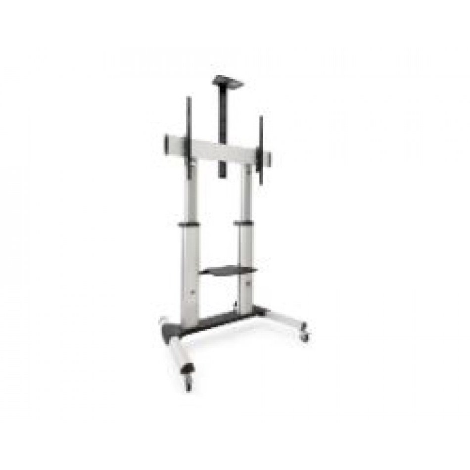 TooQ Partenón. Capacidad máxima de peso: 100 kg, Tamaño mínimo de pantalla: 152,4 cm (60"), Tamaño máximo de pantalla: 2,54 m (100"), Compatibilidad con interfaz de montaje (min): 200 x 200 mm, Compatibilidad con interfaz de montaje (max): 1000 x 600 mm. Rango de ajustes de altura: 1200 - 1650 mm, Ángulo de inclinación: -10 - 5°. Color del producto: Plata