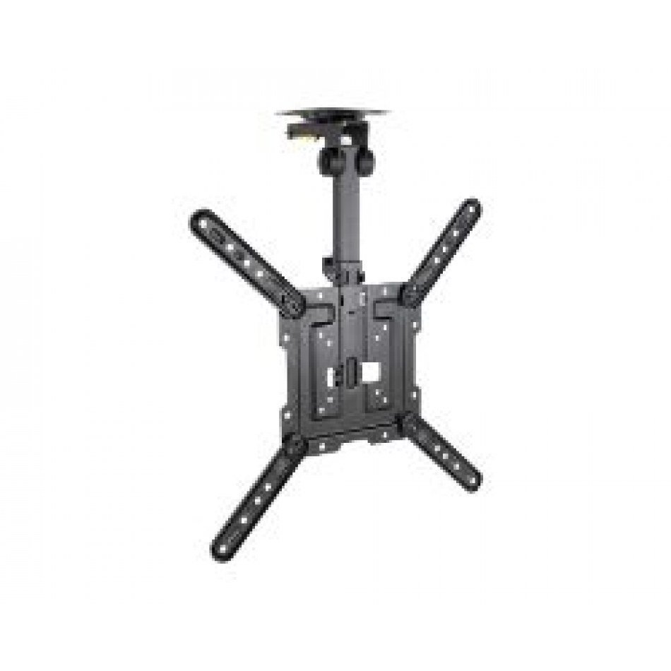 TooQ Soporte de Techo para Pantallas 23"-55", Negro. Capacidad máxima de peso: 20 kg, Tamaño mínimo de pantalla: 58,4 cm (23"), Tamaño máximo de pantalla: 139,7 cm (55"), Compatibilidad con interfaz de montaje (min): 75 x 75 mm, Compatibilidad con interfaz de montaje (max): 400 x 400 mm. Rango de ajustes de altura: 520 - 614 mm, Ángulo de inclinación: -80 - 0°, Ángulo de giro (alcance): -45 - 45°. Color del producto: Negro