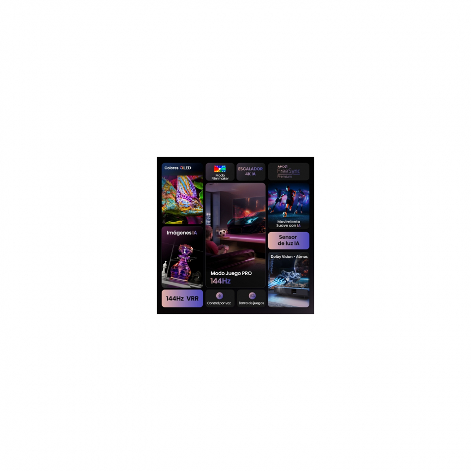 - Plana 139,7 cm (55") QLED Pro Direct-LED - 4K Ultra HD 3840 x 2160 Pixeles 16:9 - 330 cd / m² 6 ms 3800:1 - DVB-C, DVB-S, DVB-S2, DVB-T, DVB-T2 - Smart TV TV por Internet - Wifi Ethernet Bluetooth - Alto Rango Dinámico (HDR) - montaje VESA 400 x 400 mm - E 63 kWh 200 W