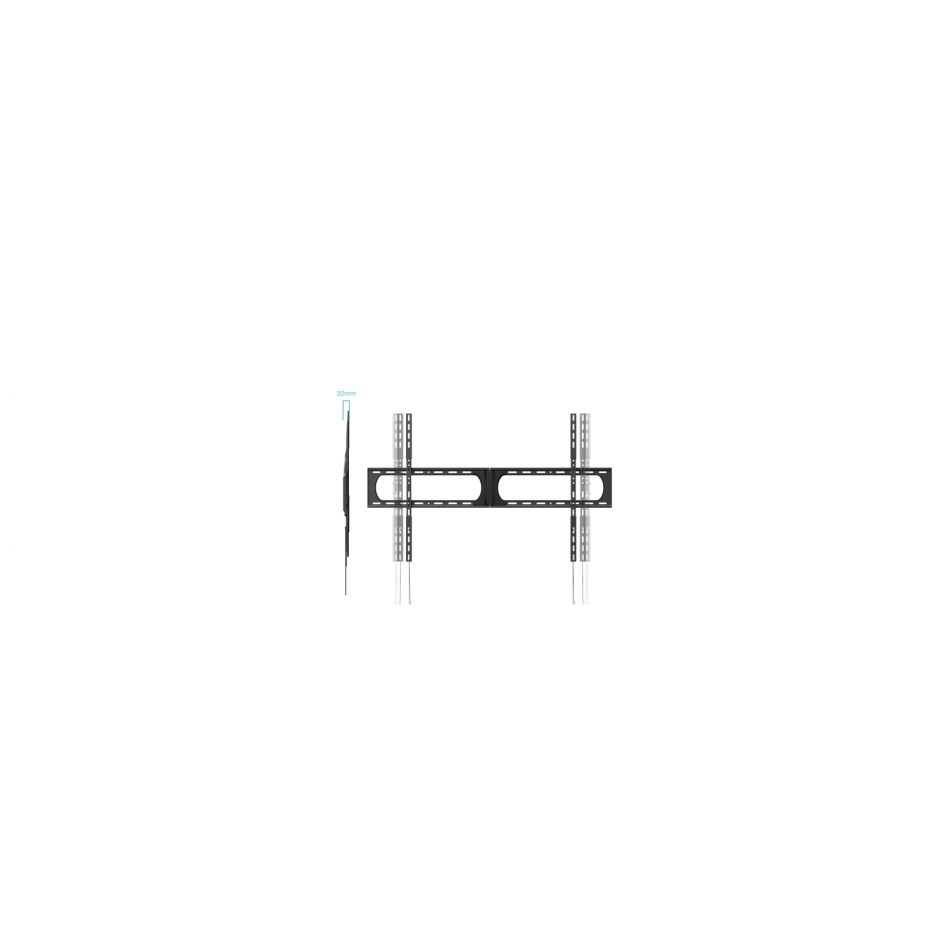 - Capacidad máxima de peso: 125 kg - Tamaño mínimo de pantalla: 94 cm (37") Tamaño máximo de pantalla: 3,56 m (140") Pared - Compatibilidad con interfaz de montaje (min): 300 x 200 mm Compatibilidad con interfaz de montaje (max): 1200 x 800 mm - Número de pantallas soportadas: 1 - Acero Negro