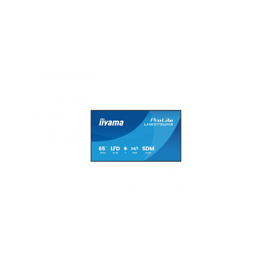 - Interior Pantalla plana para señalización digital Negro - 163,8 cm (64.5") 3840 x 2160 Pixeles LCD 500 cd / m² - 8 ms - Ethernet Wifi - Altavoces incorporados 20 W