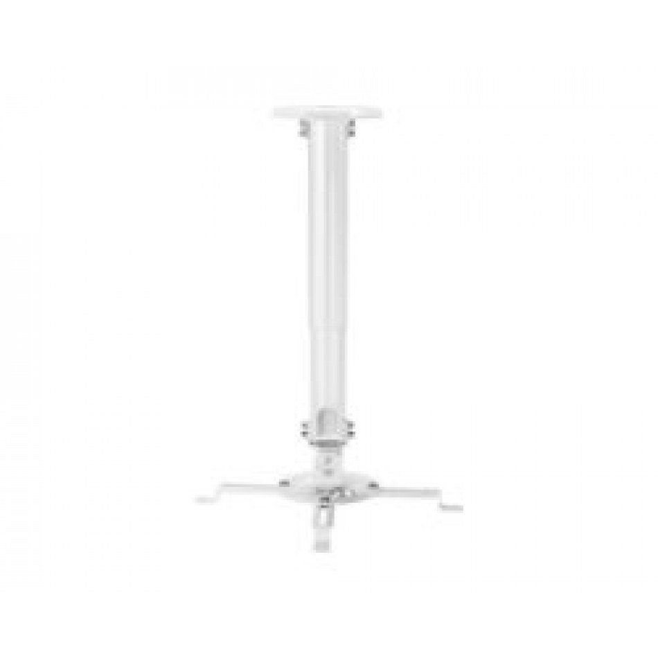 AISENS Soporte Universal Giratorio, Inclinable y Extensible de Techo para Proyector 13.5Kg, Blanco. Tipo de montaje: Techo, Capacidad máxima de peso: 13,5 kg, Color del producto: Blanco. Ancho: 130 mm, Altura: 580 mm, Profundidad: 110 mm. Cantidad por paquete: 1 pieza(s), Cantidad por caja: 10 pieza(s), Ancho de la caja principal: 315 mm