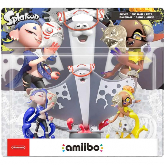 Nintendo amiibo Shiver Frye Big Man Pack de 3 amiibo Colección SplatoonAumenta la diversión en Splatoon 3 con este pack de 3 amiibo con Shiver, Big Man y Frye.Al escanear los amiibo en el juego, los jugadores podrán guardar sus combinaciones de equipo favoritas como Fresh Fits para intercambiar atuendos fácilmente. Además, los amiibo vienen con equipo exclusivo y es posible hacerse fotos en el juego con ellos.Características:Toca: Toca tu amiibo con el Joy-Con derecho de Nintendo para que cobre vida en el juego.Entrena: Entrena a tu amiibo para mejorar sus estadísticas y ampliar sus habilidades.Personaliza: Personaliza los movimientos especiales de tu amiibo.Triunfa: Lleva tu amiibo a casa de un amigo y enfréntate a las figuras amiibo de tus amigos.Lucha: Lucha contra tu propio amiibo para enseñarle nuevas tácticas.Forma equipo: Forma equipo con tu amiibo y luchad juntos.Envía a la batalla: Envía a tu amiibo a la batalla contra tu amigo.Especificaciones:Compatibilidad: Switch (Joy-Con derecho).Almacenamiento: Cada figura amiibo puede almacenar 1 perfil de personaje.¡Aumenta tu diversión en Splatoon 3 con el pack Nintendo amiibo Shiver Frye Big Man!