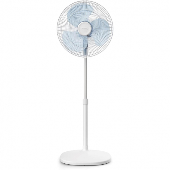 Ventilador Rowenta de Pie VU4410F2El Ventilador Rowenta VU4410F2 Pie es perfecto para mantener tu hogar fresco y cómodo durante los días calurosos. Su diseño moderno y sobrio en tonalidades blanco y azul se adapta a cualquier estilo decorativo.Altura regulable y función oscilanteEste ventilador cuenta con una altura regulable que va desde 90 cm hasta 130 cm, permitiéndote ajustarlo según tus necesidades y preferencias. Además, su función oscilante distribuye el aire de manera uniforme en toda la habitación, asegurando un ambiente fresco y agradable.Potente y silenciosoEl modelo VU4410F2 posee tres aspas potentes capaces de generar un caudal máximo de aire de 55 m3/min. Con sus tres ajustes disponibles, podrás seleccionar la velocidad que más te convenga en cada momento. Además, este ventilador garantiza un nivel de ruido mínimo de tan solo 54 dB(A), lo que te permite disfrutar de un ambiente fresco y tranquilo sin molestias.Posición nocturna y otras característicasEl Ventilador Rowenta VU4410F2 Pie incluye una posición nocturna especialmente diseñada para proporcionar mayor comodidad durante tus horas de descanso, sin interrumpir tu sueño. Entre otros detalles destacados, encontramos una longitud de cable de alimentación de 1,8 m, un panel de control mecánico y un tipo de enchufe Eur de color blanco. Además, su motor está fabricado con cobre, lo que garantiza durabilidad máxima y un consumo mínimo de energía (entre 33W y 45W).Especificaciones técnicasNivel de ruido: 54 dBFunciones: Modo nocheCaudal del aire máximo: 55 m3/hPotencia: 55 WColor: Blanco/azulNúmero de velocidades: 3Diámetro: 40 cmAprovecha ahora y mantén tu hogar fresco con el Ventilador Rowenta VU4410F2 Pie