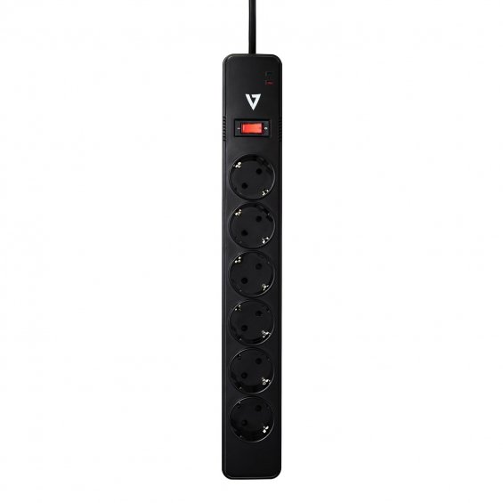 V7 Protector contra sobrevoltajes de 6 tomas Schuko para uso en casa u oficina, cable de 1,8 m, 1050 julios - Negro