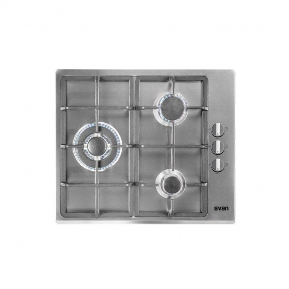 • SVAN SVE3BF, Acero inoxidable, Integrado, 58 cm, Encimera de gas, Acero inoxidable, 3 zona(s)