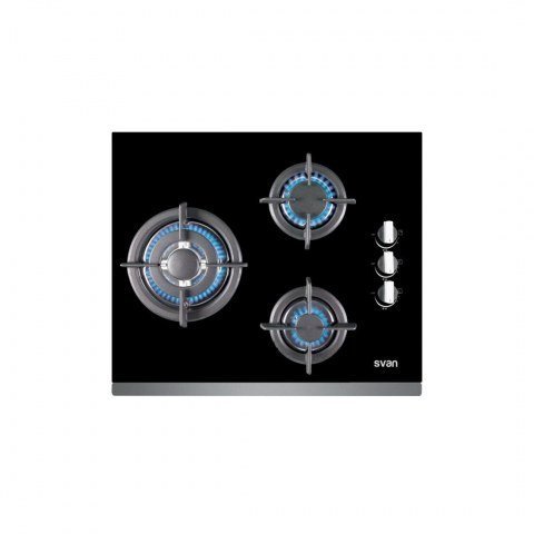 • SVAN SVEC3BF, Negro, Integrado, Encimera de gas, 3 zona(s), 3 zona(s), Extragrande