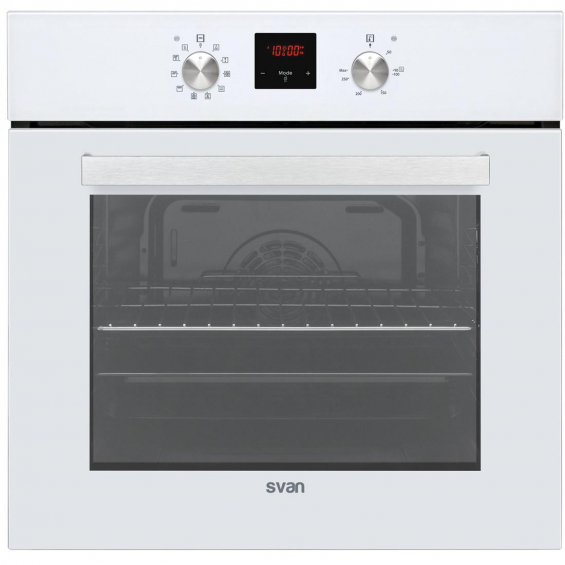 SVAN SVH224B1. Tamaño del horno: Medio, Tipo de horno: Horno eléctrico, Total capacidad interior, horno (s): 69 L. Tipo de instalación: Integrado, Color del producto: Plata, Blanco, Tipo de control: Giratorio, Tocar. Clase de eficiencia de energía: A, Consumo de energía (convencional): 0,87 kWh, Consumo de energía (convección forzada): 0,79 kWh. Ancho: 595 mm, Profundidad: 595 mm, Altura: 575 mm