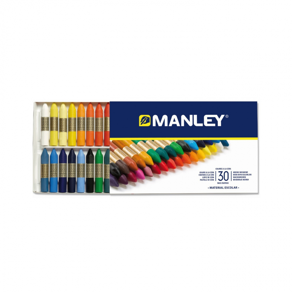 Ceras de colores - El estuche de 30 unidades ceras de colores Manley de 6cm de largo, es adecuado para el uso escolar o profesional, pudiendo disfrutar de un set de ceras de colores de máxima calidad que podrás aplicar en una gran variedad de técnicas y aplicaciones.
