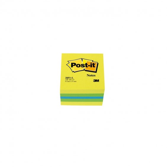 NOTAS ADHESIVAS POST-IT MINI CUBO 51 X 51 MM AMARILLO LIMON COMPUESTO POR LOS COLORES AMARILLO, VERDE Y AZUL. 400 HOJAS/ CUBO FT510091729