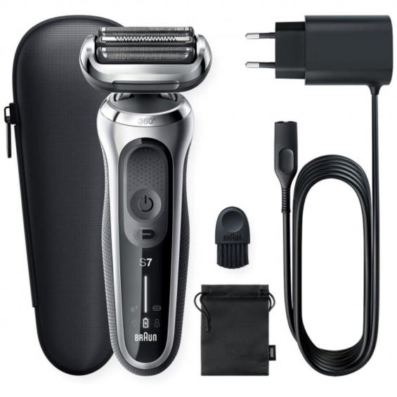 Braun Series 7 71-S1000s Máquina de afeitar de láminas PlataBraun Series 7 71-S1000s. Sistema de afeitado: Máquina de afeitar de láminas, Color del producto: Plata, Tecnologías de sistema de afeitado: AutoSense, 360° Adaptive system. Fuente de energía: Batería, Tecnología de batería: Ión de litio, Tipo de batería: Batería integrada. Tipo de embalaje: Caja. Cantidad por paquete: 1 pieza(s). Característica(s) de mango: Agarre suaveCaracterísticas:Características:Sistema de afeitado: Máquina de afeitar de láminasTecnologías de sistema de afeitado: AutoSense, 360° Adaptive systemColor del producto: PlataTipo de control: BotonesBloqueo de viajes: SiLavable: SiA prueba de agua: SiMojado y seco: SiSeguimiento de contornos: SiNúmero de máquina de afeitar cabezas / cuchillas: 3Tipo de visualizador: LEDIndicación:Indicador de nivel de batería: SiIndicador de carga: SiIndicador de bloqueo para viajes: SiControl de energía:Fuente de energía: BateríaRecargable: SiTecnología de batería: Ión de litioTipo de batería: Batería integradaTiempo de funcionamiento: 50 minTiempo de carga: 1 hCarga rápida: SiTiempo de carga rápida: 5 minVoltaje de entrada AC: 100 - 240 VBatería: SiVoltaje variable: SiSin cables: SiEmpaquetado:Tipo de embalaje: CajaContenido del embalaje:Cantidad por paquete: 1 pieza(s)Cargador: SiCepillo de limpieza: SiFunda: SiTapa protectora: SiEstuche de viaje: SiOtras características:Característica(s) de mango: Agarre suave