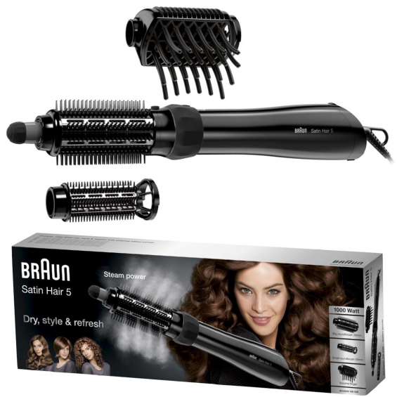 Braun AS 530E Moldeador Satin Hair 5: El aliado perfecto para un cabello saludable y con estiloSi estás buscando un moldeador de cabello que te permita crear una gran variedad de peinados, sin dañar tu cabello, el Braun Satin Hair 5 es la elección ideal. Este moldeador es uno de los más populares del mercado, gracias a su capacidad para secar, peinar y refrescar el cabello en una sola pasada. Además, cuenta con una función de vapor que te permitirá cambiar de estilo sin tener que lavarte el pelo cada vez.Función de vapor para cambiar de estilo fácilmente con el moldeador Braun AS 530ELa función de vapor del moldeador Braun Satin Hair 5 es una de sus características más destacadas. Con solo pulsar un botón, podrás revitalizar tu cabello y cambiar de estilo sin tener que lavarlo. Esta función es perfecta para los días ''entre lavados'', en los que quieres conseguir un peinado diferente sin tener que pasar por el proceso de lavado y secado. Además, el delicado vapor caliente que emite el moldeador no daña el cabello, sino que lo deja suave y brillante.Seca, peina y refresca en una pasadaEl moldeador Braun Satin Hair 5 es capaz de secar y peinar tu cabello de forma suave y efectiva, dejándolo brillante y espectacular todos los días. Sea cual sea tu corte o tipo de pelo, puedes probar una amplia gama de peinados gracias al moldeador y a sus tres accesorios profesionales. Además, su avanzada protección ayuda a mantener tu cabello sano y con aspecto saludable.Accesorios profesionales para crear diferentes estilosEl moldeador Braun Satin Hair 5 cuenta con tres accesorios profesionales que te permitirán crear diferentes estilos de cabello. El cepillo pequeño es perfecto para crear rizos suaves y definidos, mientras que el cepillo grande te permitirá crear ondas suaves y naturales. Por último, el voluminizador te ayudará a conseguir un cabello con mucho volumen, levantando el cabello desde la raíz.En resumen, si buscas un moldeador de cabello que te permita crear una gran variedad de estilos sin dañar tu cabello, el Braun Satin Hair 5 es la elección ideal. Con su función de vapor, sus accesorios profesionales y su capacidad para secar, peinar y refrescar el cabello en una sola pasada, este moldeador se convierte en tu aliado perfecto para conseguir un cabello saludable y con estilo.¡Consigue el Braun Satin Hair 5 ahora y dale estilo a tu cabello! ¡Stock disponible en las Islas Canarias!