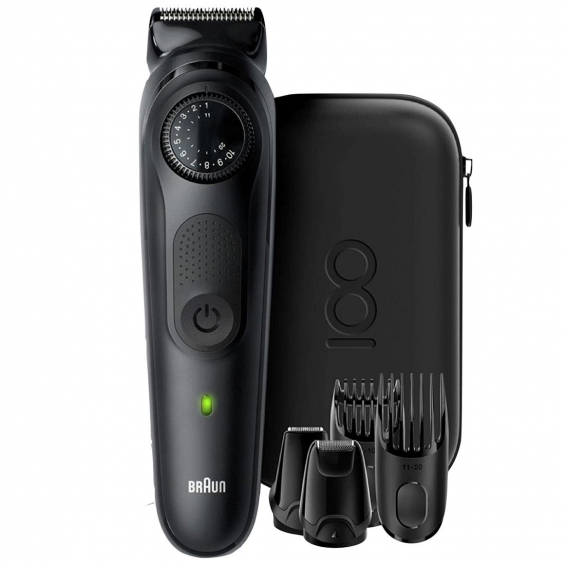 Braun MBBT7 Afeitadora Edición Limitada Con Estuche Negra (5542)DestacadosAfilada, rápida y eficaz recortadora de barba y pelo con dial de recorte de precisión con 39 ajustes de longitud. Diseño Edition: recortadora de barba y pelo con exclusivo estuche de viaje para el 100 aniversario de Braun. Cuchillas de metal afiladas de por vida, diseño alemán, fabricadas para durar. Alcanza longitudes de barba de entre 0.5 y 20 mm con los peines deslizantes de la recortadora de barba y pelo. Batería de iones de litio para hasta 100 minutos de recorte y 5 minutos de carga rápida para un recorte instantáneo. Crea líneas y bordes precisos en el cuello y las mejillas con el cabezal principal del cortabarbas.Descripción generalLa recortadora de barba Braun MBBT7 edición 100 aniversario personifica la filosofía sobre la que nacen todos los productos Braun: el buen diseño por encima de todo. Durante 100 años, el buen diseño ha sido la filosofía central de cada producto Braun. La recortadora de barba Braun MBBT7 Design Edition es un puro reflejo de la esencia de Braun: sencilla, útil y hecha para durar.