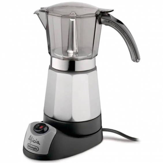 Cafetera Delonghi EMK9 Alicia de 9 TazasEl café nunca se derrama ya que la cafetera EMK9 se apaga automáticamente y conserva el café caliente, como recién hecho, durante 30 minutos.- Cafetera eléctrica con controles manuales.- Apagado automático: la cafetera se apaga automáticamente.- Función para mantener la temperatura: este dispositivo especial mantiene el café caliente durante 30 minutos.- Depósito del café y tapa transparentes para controlar la preparación del café.- Base de toque frío: puede poner la cafetera sobre cualquier superficie.- 9 tazas de café.- Base independiente: cafetera sin cable, con una base giratoria de 360°.Apagado automático cuando el café está listoFunción de conservación del calor para mantener el café caliente durante 30 minutosJarra y tapa transparentes para controlar la preparación del caféPrepara 6 o 9 tazas de café simultáneamenteCaracterísticas:Cafetera eléctrica con controles manuales.Apagado automático si.Función para mantener la temperatura si durante 30 minutos.Depósito del café y tapa transparentes.Base de toque frío si.Capacidad 9 tazas de café.Base independiente cafetera sin cable, con una base giratoria de 360°.Tipo de producto Cafetera moka eléctrica.Pantalla incorporada No.Café tipo de entrada café molido.Preparación de café Si.Máquina de café Totalmente automática.Molinillo integrado No.Potencia 450 W.Voltaje de entrada AC 220-240.Frecuencia de entrada AC 50/60.Apagado automático Si.Color Negro y Acero inoxidable.Dimensiones:Ancho 12,2 cm.Profundidad 18,5 cm.Altura 27,0 cm.Peso 1 kg.