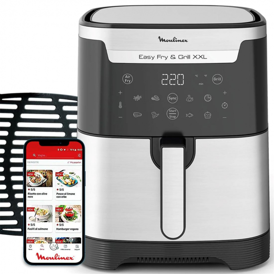 Moulinex Easy Fry & Grill XXL Sencillo Independiente Freidora de aire caliente Negro, Acero inoxidable