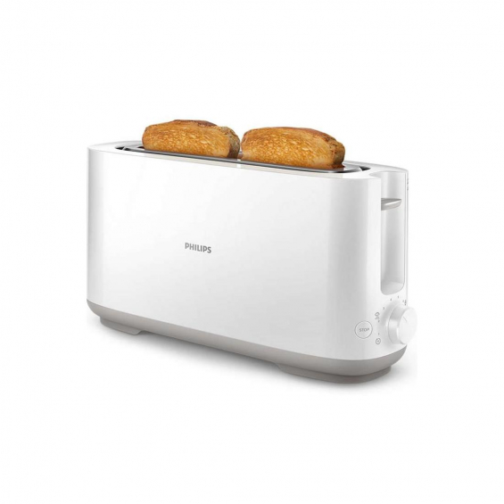Philips HD-2590/00 Tostador blanco 1030 WTostador con ranura larga con ocho ajustes para obtener resultados uniformes y dorados, independientemente de lo que tuestes o cómo lo deseas. La rejilla calientabollos integrada se adapta a cualquier cosa, desde bollos hasta croissantsFuncionesTostado ajustableDesconexión automáticaBotón de cancelarExterior de pared fríaRecogecableFunción para descongelarFunción de extraelevaciónPatas antideslizantes8 ajustes de tostado