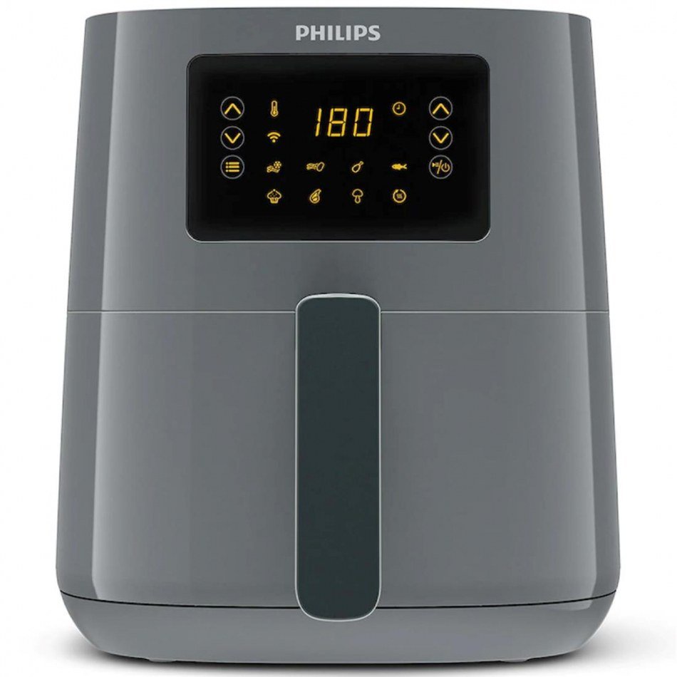 Freidora de aire sin aceite Philips Airfryer Serie 5000 HD9255/60Disfruta de una cocina saludable sin aceite con la tecnología Rapid Air de la freidora de aire Philips Airfryer Serie 5000 HD9255/60. Esta freidora sin aceite digital de la gama Essential Conectada te permite freír, asar, tostar y hornear tus alimentos favoritos.Características:Capacidad del recipiente: 4,1 litrosPotencia: 1400 WIncluye pantalla táctil digital con 7 modos de cocción preestablecidosPosibilidad de conexión con la aplicación App NutriU para seguimiento y controlCesta QuickClean con revestimiento antiadherente para una limpieza sencillaExterior de pared fría e interruptor de encendido/apagadoTodas las piezas extraíbles son aptas para el lavavajillasCon su capacidad de 0,8 kg (4,1 litros) y potencia de 1400 W, la freidora de aire Philips Airfryer Serie 5000 HD9255/60 te permite preparar deliciosos platos sin necesidad de aceite. Su tecnología Rapid Air garantiza una cocción uniforme y rápida, mientras que la pantalla táctil digital te permite seleccionar fácilmente entre los 7 modos de cocción preestablecidos.Además, gracias a la conexión con la aplicación App NutriU, puedes seguir y controlar tus recetas desde tu dispositivo móvil. La cesta QuickClean con revestimiento antiadherente facilita la limpieza, y todas las piezas extraíbles son aptas para el lavavajillas.