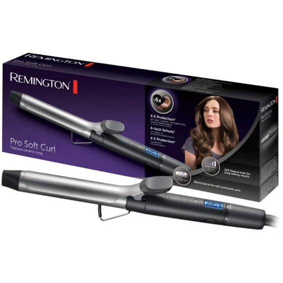 Remington CI6525 Rizador y Ondulador de Pelo Pro Soft Curl, con Pinza de 25 mmEl Remington Rizador y Ondulador de Pelo Pro Soft Curl es la herramienta perfecta para crear rizos suaves y sueltos. Con su pinza de 25 mm de diámetro, puedes lograr rizos de aspecto natural y elegante.Características:Marca: RemingtonTipo de pelo: Grueso, finoMaterial: CerámicaColor: NegroTamaño del barril: 25 mmNombre del modelo: Remington CI6525Peso del producto: 11,64 OnzasFuente de alimentación: Eléctrico con cableEste rizador cuenta con un cono revestido de cerámica con titanio para proporcionar suavidad y brillo a tu cabello. Además, cuenta con un revestimiento de protección x4: anti-estática, cerámica, turmalina iónica y un revestimiento para un deslizamiento suave.Con su barril de 25 mm, puedes crear rizos suaves y sueltos que durarán todo el día. Además, puedes ajustar la temperatura gracias a sus 10 ajustes que van desde 130 a 220°C. El rizador se calienta rápidamente en solo 30 segundos y cuenta con un apagado automático de seguridad después de 60 minutos de inactividad.Otras características incluyen una punta fría de seguridad, una pata plegable para protección contra el calor, una rueda de encendido y apagado y un cable giratorio para mayor comodidad. Además, este rizador tiene voltaje universal, lo que significa que puedes llevarlo contigo a cualquier parte del mundo.¡Consigue rizos perfectos y duraderos con el Rizador y Ondulador de Pelo Pro Soft Curl de Remington! ¡Stock disponible en las Islas Canarias!Términos de Búsqueda Comunes:Remington CI6525, Rizador Remington, Ondulador Remington, Pro Soft Curl, Rizador y Ondulador de Pelo, rizador de pelo, rizador y ondulador de pelo, rizador de pelo profesional, rizador de pelo con pinza, rizador de pelo suave, rizador de pelo Remington, rizador de pelo con barril de 25 mm, rizador de pelo de cerámica, rizador de pelo con revestimiento de titanio, rizador de pelo con temperatura ajustable, ean13= 4008496975785