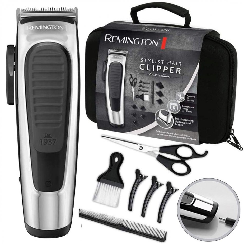 Cortapelos Remington HC450REF. 4031230000 / EAN 5038061101096El Cortapelos Remington HC450 es un producto de alta calidad diseñado para hombres. Con su elegante color negro y cromado, este cortapelos es perfecto para darle un toque profesional a tu estilo de peinado.Accesorios de primera claseEste cortapelos viene con una variedad de accesorios que te ayudarán a obtener resultados precisos y profesionales. Incluye un maletín de primera clase para guardar y transportar el cortapelos de manera segura. También cuenta con pinzas separadoras, una capa de peluquería, un peine, tijeras y un cepillo para el cuello.Ocho posiciones de corteCon ocho posiciones de corte, puedes ajustar fácilmente la longitud de tu cabello para obtener el estilo deseado. Ya sea que estés buscando un corte corto y pulido o un estilo más largo y texturizado, este cortapelos te ofrece la versatilidad que necesitas.Cuchillas de acero inoxidable autoafilablesLas cuchillas de acero inoxidable de este cortapelos son autoafilables, lo que significa que se mantendrán afiladas y listas para su uso durante mucho tiempo. Esto garantiza cortes precisos y sin tirones, brindándote resultados profesionales en cada uso.Fácil de limpiarEl cortapelos Remington HC450 es lavable, lo que facilita su limpieza después de cada uso. Viene con un cepillo limpiador que te permite eliminar fácilmente los cabellos sueltos y mantener el cortapelos en óptimas condiciones.No pierdas la oportunidad de adquirir el Cortapelos Remington HC450, con stock disponible en las Islas Canarias. ¡Consigue un estilo de peinado profesional con facilidad!