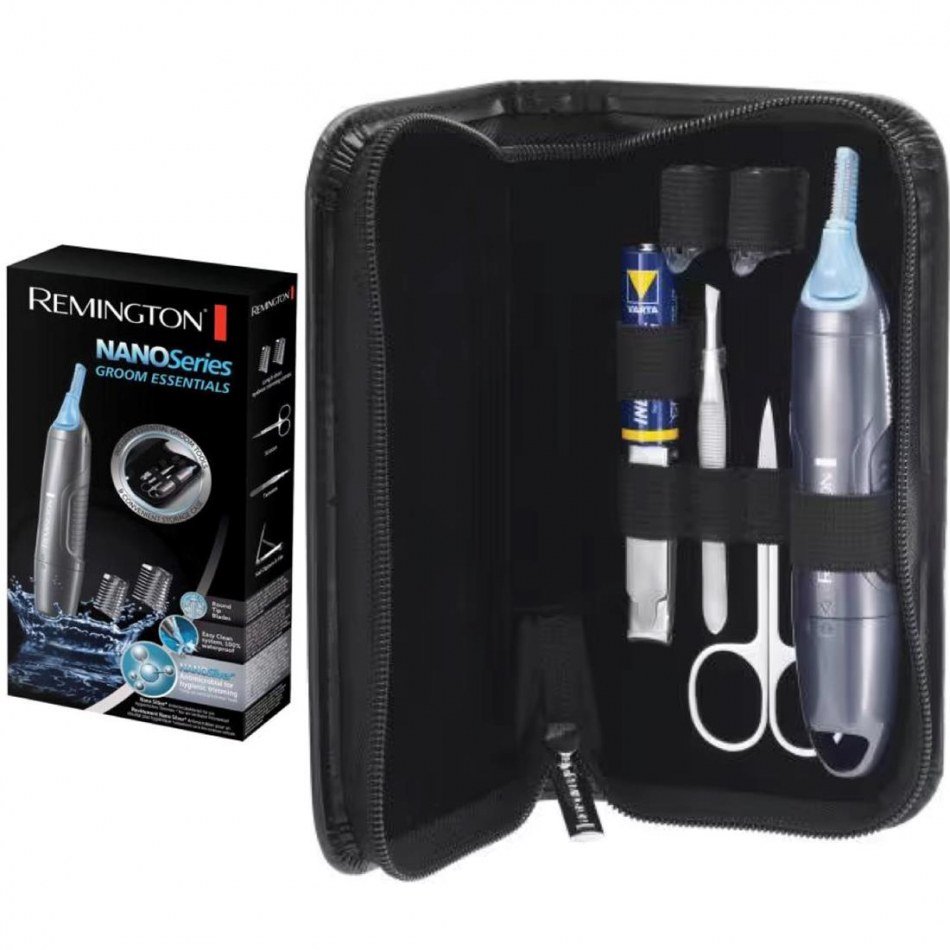 Juego de recortadoras Remington NE3455 para el vello de la nariz, las orejas y las cejasEl juego de recortadoras Remington NE3455 es perfecto para mantener el vello no deseado bajo control en la nariz, las orejas y las cejas. Con su diseño de doble cara, esta recortadora vertical ofrece una solución completa para tu rutina de cuidado personal.Función de lavado y 2 peines de fijaciónEsta recortadora cuenta con una función de lavado, lo que la hace muy conveniente para la limpieza y el mantenimiento. Además, incluye 2 peines de fijación para adaptarse a diferentes longitudes de vello en la nariz, las orejas y las cejas, permitiéndote lograr el estilo deseado con facilidad.Tecnología de acabado de confort y carcasa antimicrobianaLa tecnología de acabado de confort de esta recortadora garantiza un recorte seguro y fácil de usar, sin riesgo de cortes o irritaciones. Además, su carcasa antimicrobiana de nanoplata proporciona una protección adicional contra bacterias y microorganismos, asegurando un recorte higiénico en todo momento.100% resistente al aguaLa recortadora Remington NE3455 es 100% resistente al agua, lo que significa que puedes utilizarla tanto en aplicaciones húmedas como secas. Esto te da la libertad de usarla en la ducha o sin preocuparte por dañarla si se moja accidentalmente.Kit completo y práctico estuche de almacenajeEl kit incluye una tijera y una pinza, complementando la recortadora para ofrecerte una solución completa para el cuidado del vello no deseado. Además, viene con un estuche con cremallera para que puedas guardar y transportar todas las piezas de manera segura y conveniente.Con el juego de recortadoras Remington NE3455, puedes mantener el vello de la nariz, las orejas y las cejas bajo control de manera fácil y segura, asegurando un aspecto impecable en todo momento.¡Consigue el juego de recortadoras Remington NE3455 y controla tu vello no deseado hoy mismo!¡Stock disponible en las Islas Canarias! ¡No te quedes sin el tuyo!
