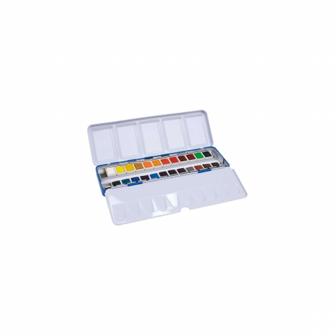 Milan Art Estuche Metalico de 24 Acuarelas Medio Godet - Opacos y Resistentes a la Luz - Mezclables - Bandeja Abatible - Colores S 05B1624