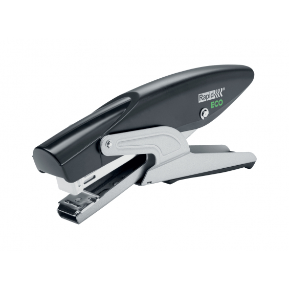 - Grapa hasta 20 hojas de papel (80 g/m²) - De plástico reciclado posconsumo 100 % - Impresión con tinta de soja, cartón reciclado, diseño que facilita su desmontaje - Práctico mecanismo de recarga por la parte superior - Para grapas del n.º 24 o 26 - Profundidad de inserción de 55 mm - 5 años de garantía si se utilizan grapas Rapid - Yunque ajustable para grapar abierto y cerrado