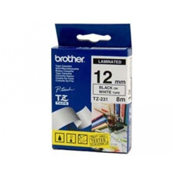 Cinta 12mm 8mBROTHER 12mm Negro sobre Blanco (TZe-N231)