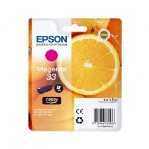 Epson C13T33434010. Tipo de tinta de color: Tinta a base de pigmentos, Rendimiento de impresión de página con tinta de color: 300 páginas, Volumen de tinta de color: 4,5 ml, Cantidad por paquete: 1 pieza(s)