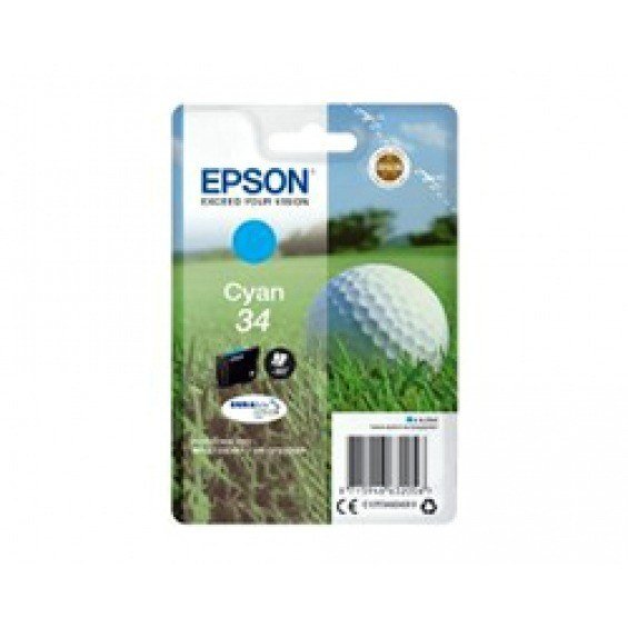 Epson Golf ball Singlepack Cyan 34 DURABrite Ultra Ink. Tipo de cartucho de tinta: Rendimiento estándar, Rendimiento de impresión de página con tinta de color: 300 páginas, Volumen de tinta de color: 4,2 ml, Cantidad por paquete: 1 pieza(s)
