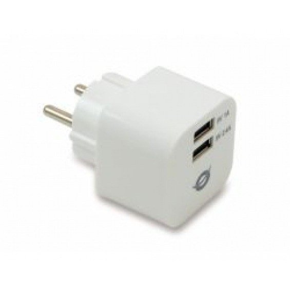 Conceptronic Cargador USB de 2 puertos y 3.4 A. Tipo de cargador: Interior, Alimentación: Corriente alterna, Compatibilidad del cargador: Cámara digital, GPS, Smartphone, Tableta. Voltaje de entrada: 100 - 240 V, Voltaje de salida máximo: 5 V. Cantidad de puertos USB 2.0: 2. Color del producto: Blanco