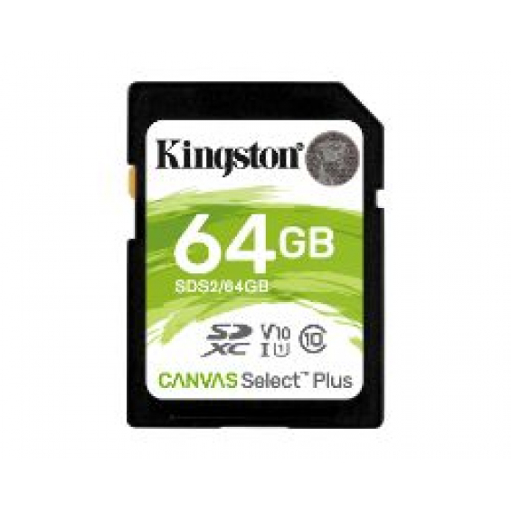 • Kingston Technology Canvas Select Plus, 64 GB, SDXC, Clase 10, UHS-I, 100 MB/s, Class 1 (U1)