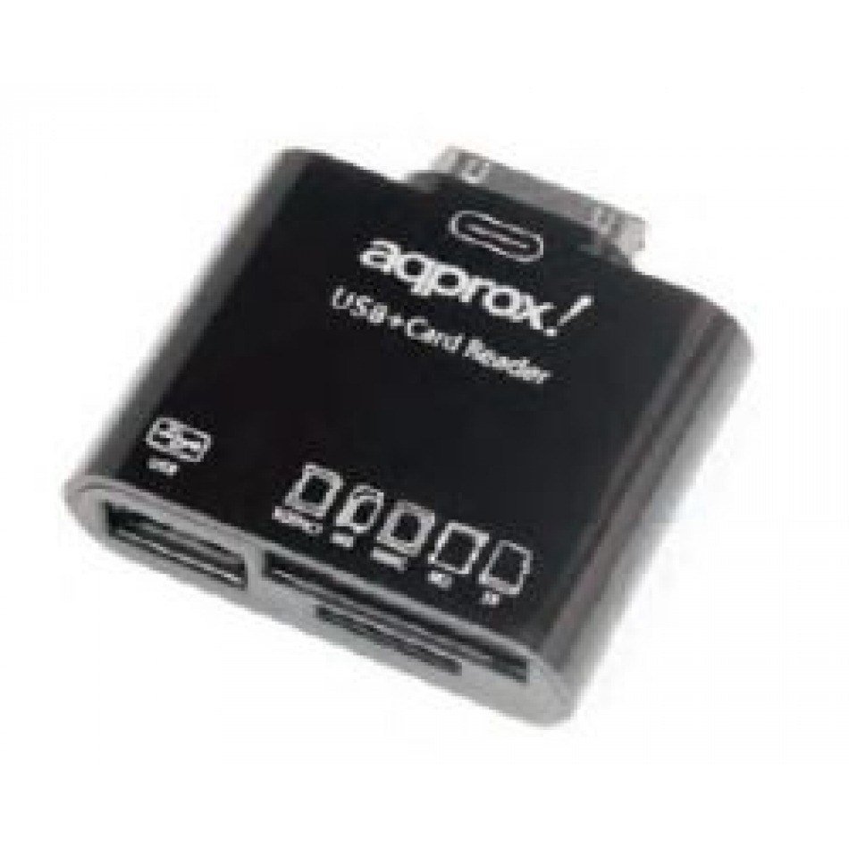 Approx appCRS. Tarjetas de memoria compatibles: Memoria extraíble, MicroSD (TransFlash), microSDHC, miniSD, MMC, MS Duo, MS Micro (M2), MS PRO,..., Color del producto: Negro, Velocidad de transferencia de datos: 480 Mbit/s. Tipo de interfaz: Samsung 30-pin. Peso del paquete: 58,7 g, Tipo de embalaje: Caja. Dimensiones del embalaje (alto x alto x peso): 165 x 85 x 20 mm