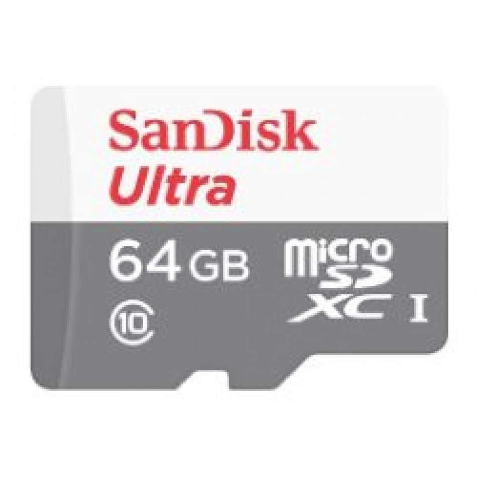 SanDisk 64GB Ultra microSDXC. Capacidad: 64 GB, Tipo de tarjeta flash: MicroSDXC, Clase de memoria flash: Clase 10, Velocidad de lectura: 100 MB/s, Velocidad de escritura: 10 MB/s. Color del producto: Gris