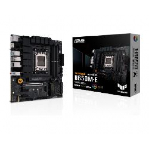 ASUS TUF GAMING B650M-E. Fabricante de procesador: AMD, Socket de procesador: Zócalo AM5, Procesador compatible: AMD Ryzen 5 7th gen, AMD Ryzen 7 7th Gen, AMD Ryzen 9 7th Gen. tipos de memoria compatibles: DDR5-SDRAM, Memoria interna máxima: 128 GB, Tipo de ranuras de memoria: DIMM. Interfaces de disco de almacenamiento soportados: M.2, SATA III, Tipos de unidades de almacenamiento admitidas: HDD & SSD, Niveles RAID: 0, 1, 10. Tipo de interfaz ethernet: 2.5 Gigabit Ethernet. Componente para: PC, Factor de forma: micro ATX, Familia del chipset: AMD