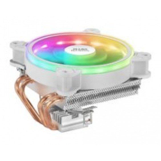 Mars Gaming MCPU220 Disipador CPU TDP 140W Dual ARGB Silencioso PWM Blanco. Tipo: Enfriador, Diámetro de ventilador: 12 cm, Velocidad de rotación (mín.): 900 RPM, Velocidad de rotación (máx.): 2200 RPM, Nivel de ruido (baja velocidad): 9 dB, Nivel de ruido (alta velocidad): 26 dB, Máximo flujo de aire: 69,2 cfm. Voltaje: 12 V. Ancho: 123 mm, Profundidad: 84 mm, Altura: 120 mm. Color del producto: Blanco