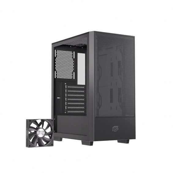 - Tamaño de placa base compatible ATX, Micro ATX, Mini ITX - Tarjeta gráfica de hasta 330mm - Refrigeración de CPU hasta 175mm - Capacidad de instalación de refrigeración liquida de hasta 360mm - 1x ventilador de 120mm con función PWM incluido