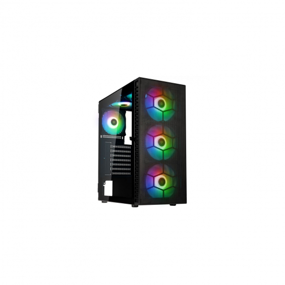 - Midi Tower PC Juego - ATX, micro ATX, Mini-ITX - Tamaños de disco duro soportados: 3.5" Factor de forma de disco SSD: 2.5" - Número de bahías 2.5'': 2 Número de puertos 3.5": 2 - Ventana lateral Iluminación Multi Panel(es) de vidrio templado - Acero, Vidrio templado - Negro