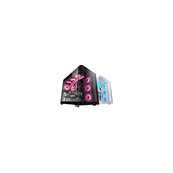 - ESTRUCTURA DE DOBLE CÁMARA: El chasis pc MC-FUSION cuenta con un diseño de doble cámara que separa la fuente de alimentación y los discos duros en un compartimento lateral oculto; Esta configuración optimiza el flujo de aire y maximiza el espacio interno, creando un setup organizado y térmicamente eficiente