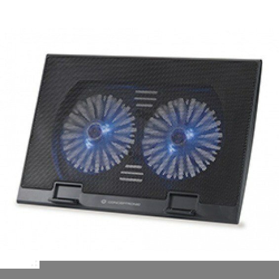 Conceptronic THANA02B. Tamaño máximo de pantalla: 43,2 cm (17"), Número de ventiladores incluidos: 2 pieza(s), Diámetro de ventilador: 12,5 cm. Color del producto: Negro, Material: Plancha, Plástico, Iluminación de color: Azul. Interfaz de host: USB. Alimentación: USB, Voltaje de entrada: 5 V. Ancho: 380 mm, Profundidad: 260 mm, Altura: 23 mm