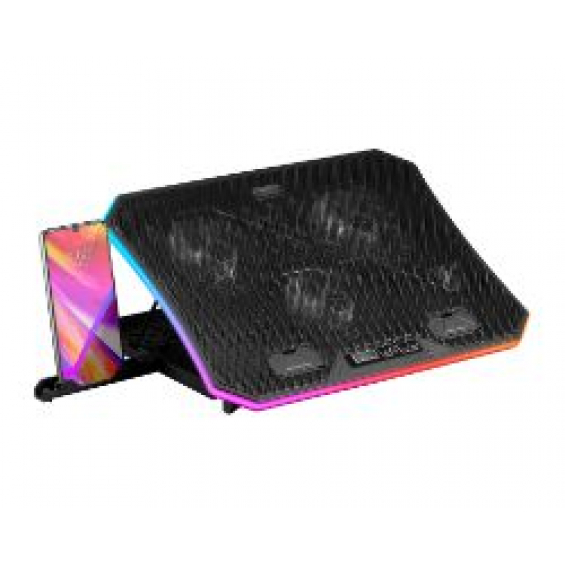 Mars Gaming MNBC6, Base Refrigeradora + Stand XL 19'' ARGB, 3 Ventiladores, Soporte Móvil. Tipo de producto: Soporte para ordenador portátil, Color del producto: Negro, Material: Acrilonitrilo butadieno estireno (ABS), Aluminio. Intensidad nominal: 0,8 A, Voltaje de entrada: 5 V. Ancho: 417 mm, Profundidad: 300 mm, Altura: 38 mm. Ancho del paquete: 430 mm, Profundidad del paquete: 306 mm, Altura del paquete: 40 mm