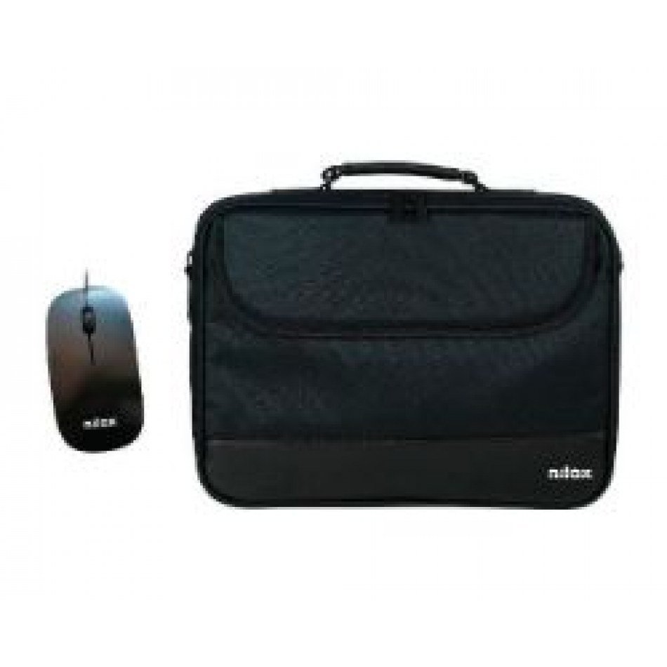 Nilox MALETIN 15,6 DURO + RATON OPTICO USB. Tipo de funda: Maletín, Tamaño máximo de pantalla: 40,6 cm (16"), Número de compartimentos: 1, Tirante para hombro. Peso: 546 g. Coloración de superficie: Monocromo